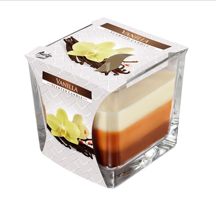Ароматизирана свещ в чаша, три цвята – 8 x 8 x 8 cm, ванилия