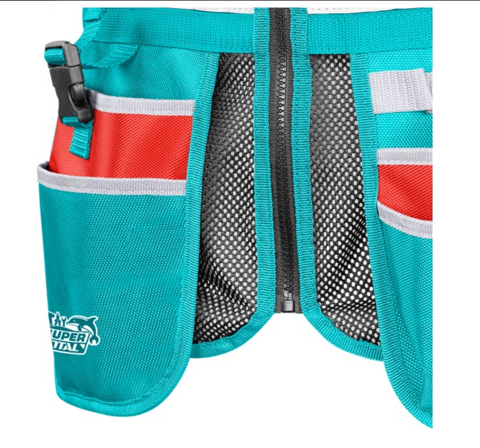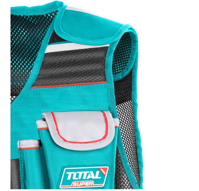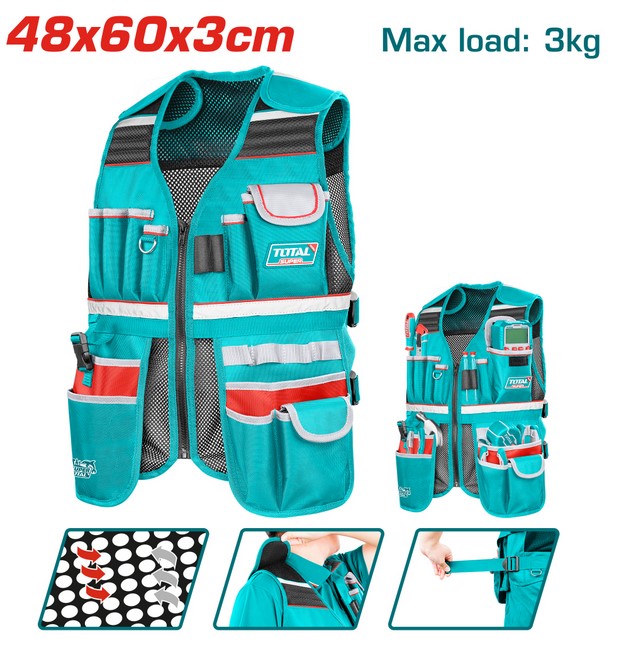 Елек за инструменти с регулируеми презрамки и обиколка на талията. Множество отделения за всички нужди за съхранение.