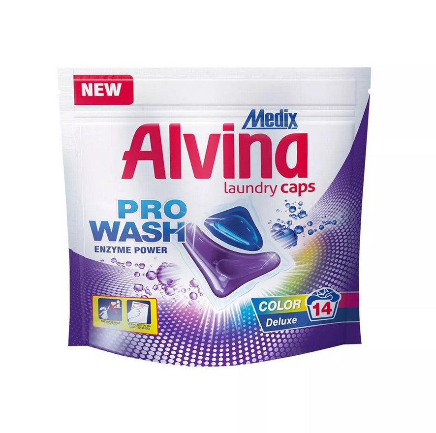 Лесният начин за още по-чисто и ароматно пране! MEDIX ALVINA Laundry Caps са вече тук! Два пъти по-концентрираната Pro Wash формула с мощен ензимен комплекс ще се справи и с най-упоритите петна. Изключително лесни за употреба – 1 капсула = 1 изпиране, MEDIX ALVINA Laundry Caps ще се справят блестящо дори при пране на ниски температури. Усетете силата на MEDIX ALVINA Laundry Caps Color Active в действие и се насладете се на дълготрайния свеж аромат.