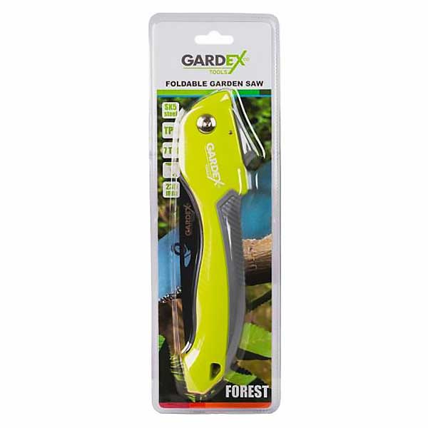 Сгъваемият ръчен трион Gardex FOREST GX е практично решение за бързо и ефективно рязане на клони, храсти и дървесина в градината, гората или къмпинга. Благодарение на компактния си дизайн и сгъваем механизъм с двойно заключване, той е изключително лесен за съхранение и безопасен за носене в джоб, раница или кутия с инструменти. Острието е изработено от висококачествена японска стомана SK5 и разполага с 7 зъба на инч (TPI – teeth per inch), които са фабрично заточени с тристранен профил. Това гарантира бързо, гладко и прецизно рязане с минимално усилие – дори на по-дебели клони или жилава дървесина. Подходящо е за работа със суха и прясна дървесина. Интегрираният бутон за заключване осигурява безопасност при употреба, като държи острието стабилно както в отворено, така и в затворено положение. Това предотвратява неволно отваряне или затваряне по време на работа или транспорт. Дръжката е изработена от TPR полимер с гумирано покритие и ергономична форма за сигурен захват, дори при влажни или кални условия. Осигурява стабилност, контрол и комфорт при продължителна работа без напрежение в ръката. С дължина на острието от 210 мм и сгъваем дизайн, трионът е изключително компактен и лек – идеален за носене при походи, къмпинг или всякакви дейности на открито.