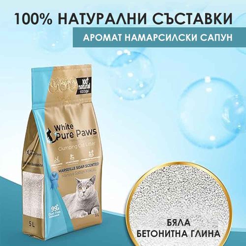 Котешка тоалетна марсилски сапун 5л ЧИСТИ ЛАПИ (PURE PAWS) 2.79 € /БР / 5.45 лв.