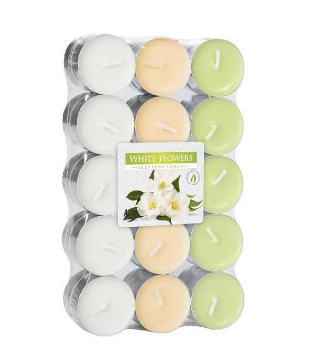 Чаени свещи 18 бр. бели цветя P15-18-179