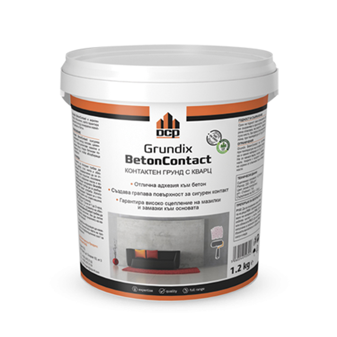 Grundix Betoncontact осигурява адхезия между всички видове гладки бетонови повърхности с минимална абсорбираща способност и гипсови машинно полагани мазилки. Съдържа органични свързващи вещества и подбран кварцов пясък, които правят отлична връзката на мазилката с основата.