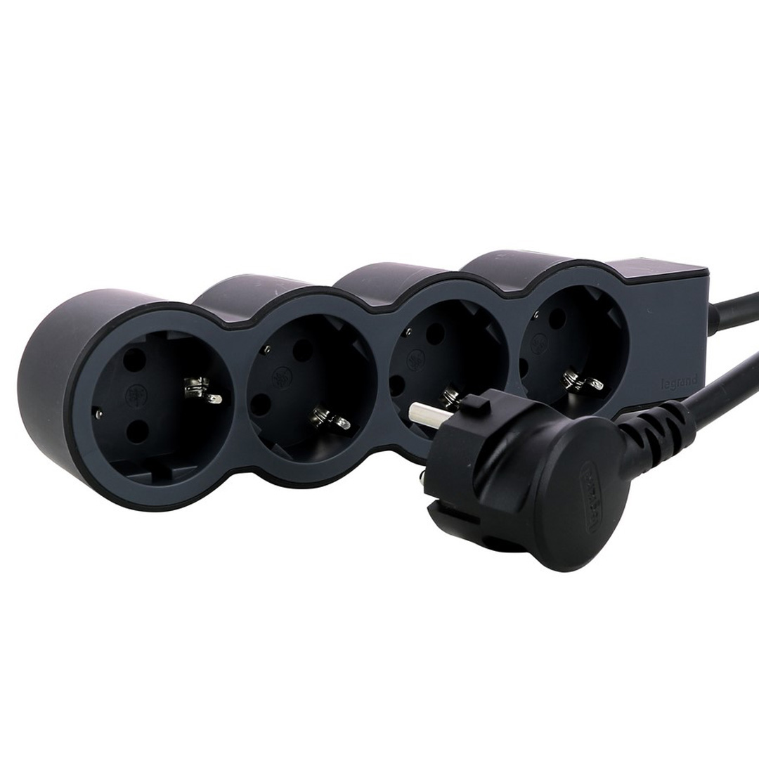 694553 Legrand Разклонител STD, шуко, 4X2P+E, 1,5м. кабел, черно/сиво