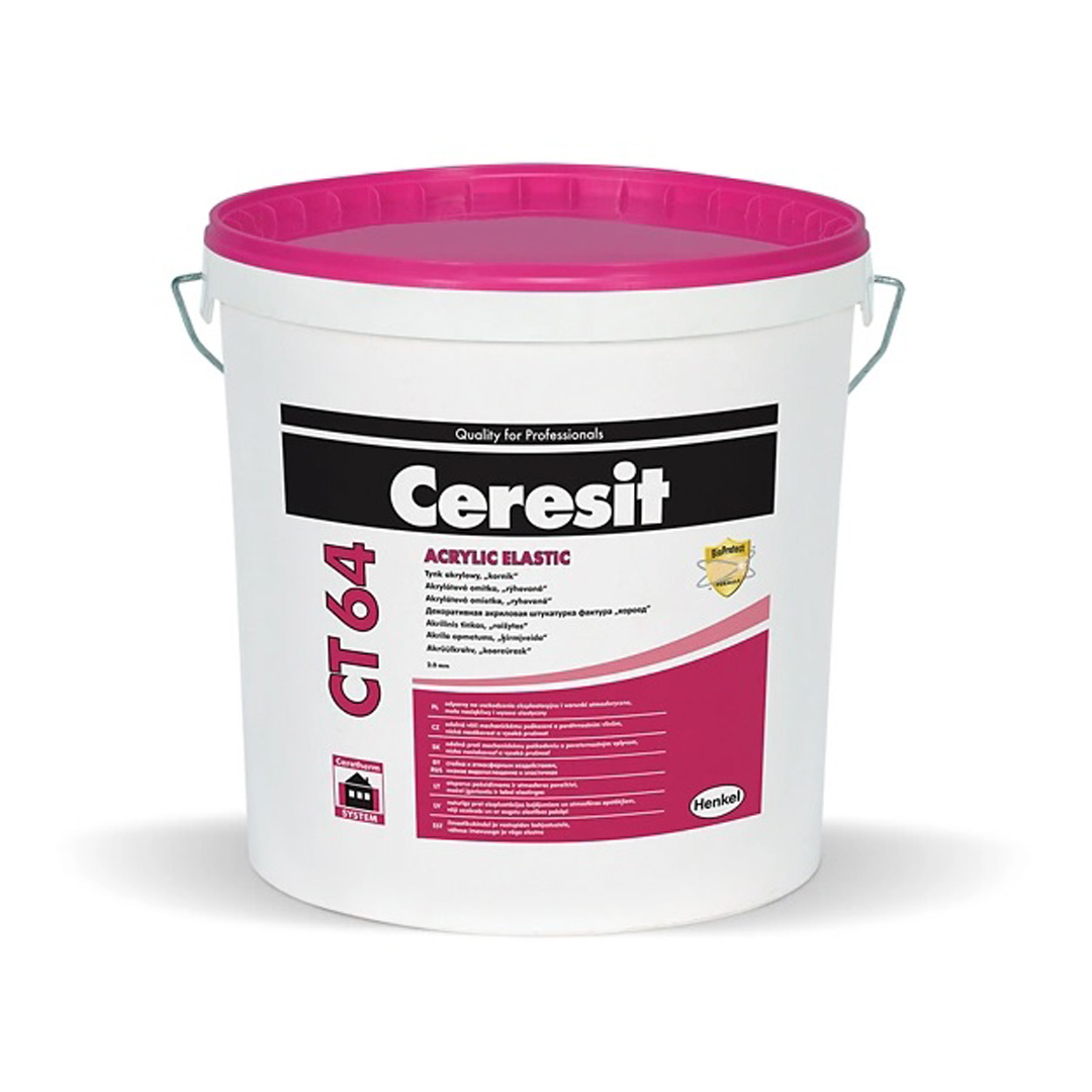Акрилна мазилка CERESIT СТ 64 е полимерна мазилка с рустикална структура 2,0 мм. Декоративна и тънкослойна за фасади и вътрешни стени в сгради. С BioProtect формула, която осигурява защита срещу мухъл и плесени.