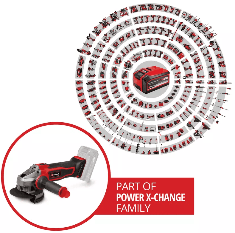 Акумулаторният ъглошлайф Einhell AG 18/115-2 Li – Solo е доказал се инструмент при рязане и полиране. Независимо дали работите с метал или камък: възможните приложения са безкрайни. Ъглошлайфът е част от семейството Power X-Change, за работа е необходима една 18 V батерия. Бързо регулиращият се предпазител на диска осигурява гъвкавост при употреба. Тънкият дизайн позволява удобна работа, докато допълнителната дръжка може гъвкаво да се монтира в две позиции.