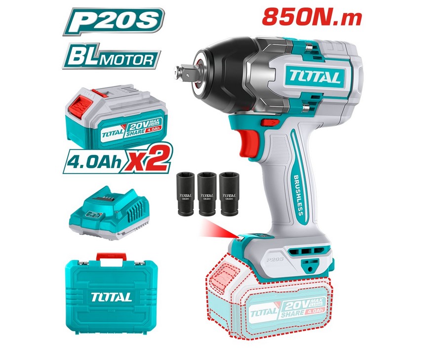 Акумулаторен Ударен Безчетков Гайковерт TOTAL INDUSTRIAL TIWLI2085, 20 V, 2 x 4 Ah