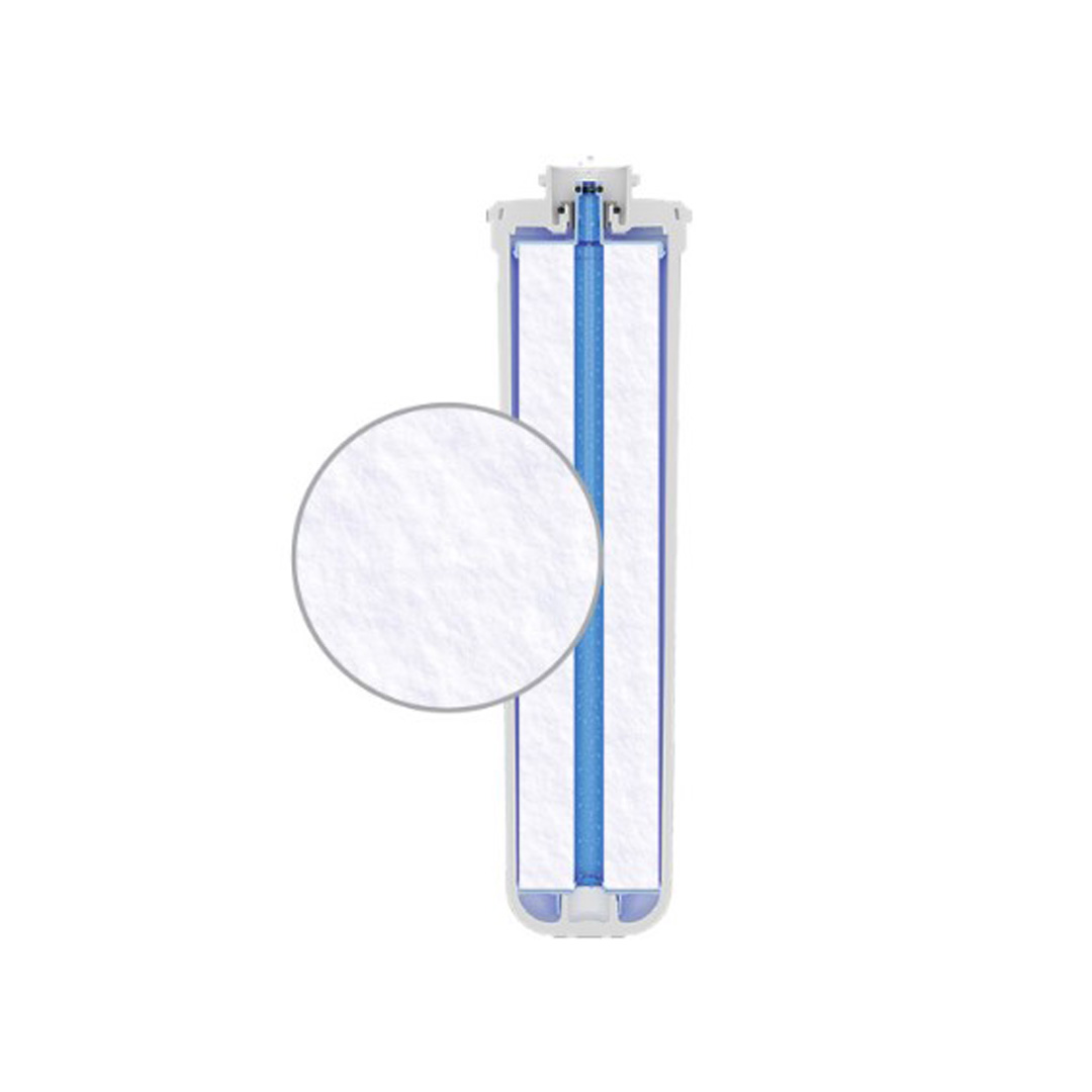 Благодарение на градиентната структура на полипропилена, K5 задържа значително повече примеси от аналозите си. K5 съхранява минералния фон и не омекотява водата.