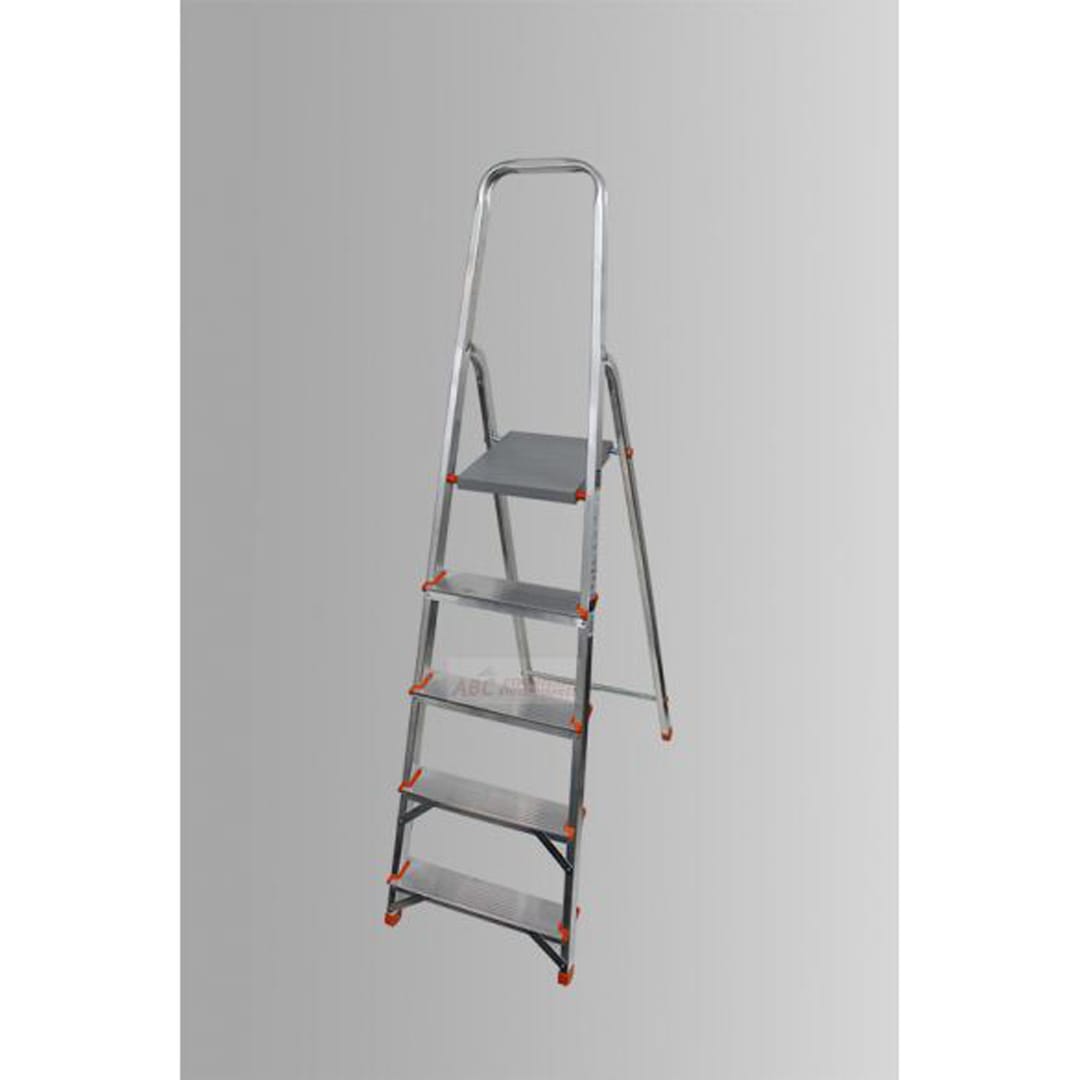Удобна двустранна стояща стълба с 2×5 стъпала, изработена от качествени алуминиеви профили с дебелина на стената 1.2 мм. Работна височина 2.3 м.Стъпала: широки 80 mm; AL профил с висока якост, оребрен против приплъзване. Сигурно закрепване на стъпалата към краката. Крака: AL правоъгълен профил 40х20mm; Платформа: 160mm х 340 mm, AL; Краката на стълбата са осигурени против приплъзване чрез специални пластмасови обувки. Товароносимост 150kg; Отговаря на EN131.
