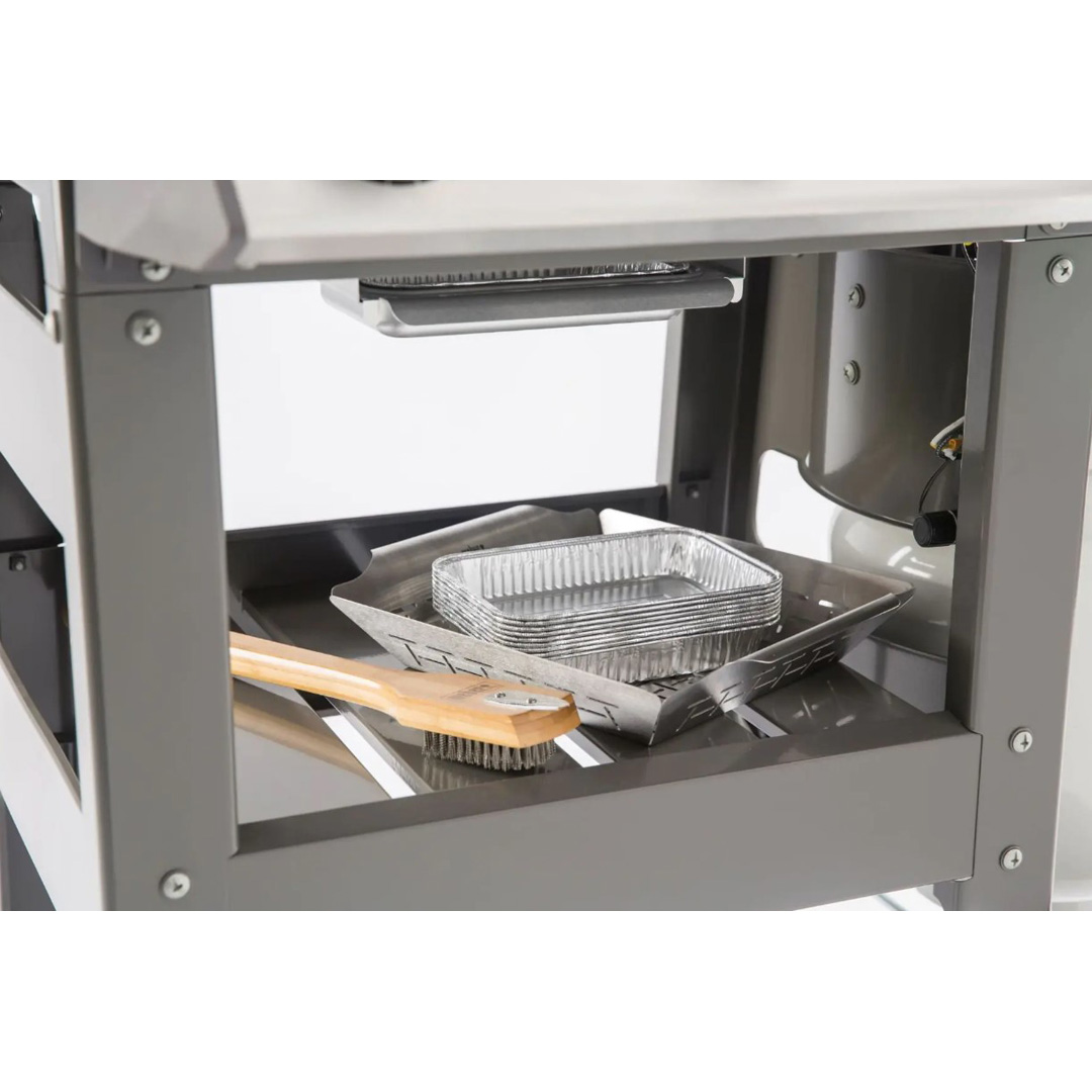 – Стабилна количка с рафт – допълнително място за аксесоарите за барбекю