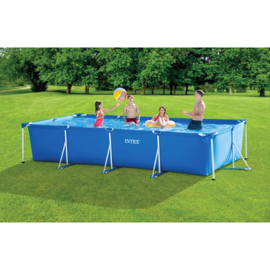 Басейн с метална рамка, помпа и филтър. Състои се от здрава метална рамка и ламинирани стени. Благодарение на филтърната помпа ще се радвате на прозрачна вода цяло лято.