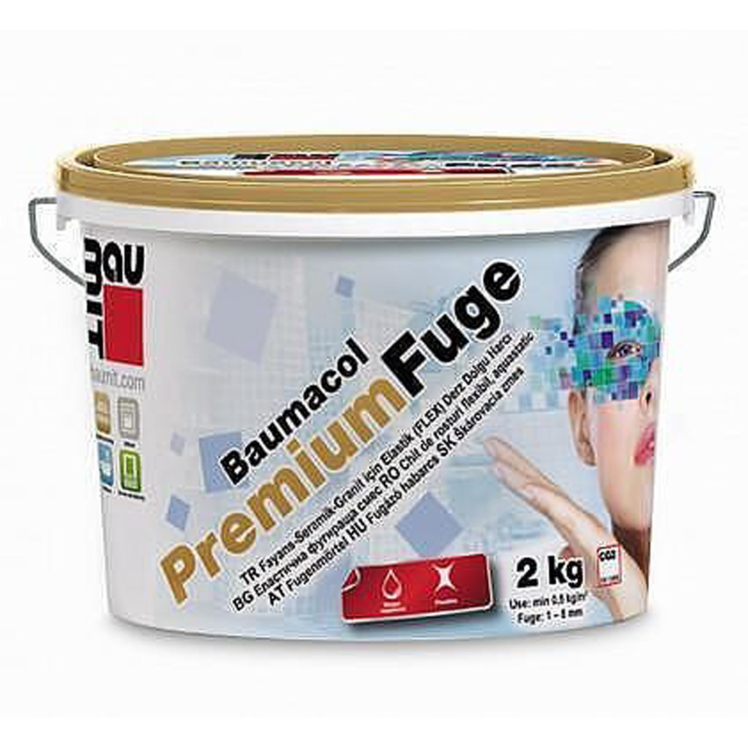 Фугирщата смес Baumacol Preimum Fuge е мразо и водо-устойчива, не реагира с хранителни продукти и е предназначена за широчина на фугите между 1 и 8мм. Сместа е високо еластична и осигурява добро и дълговечно покритие във екстериорна и интериорна работна среда.