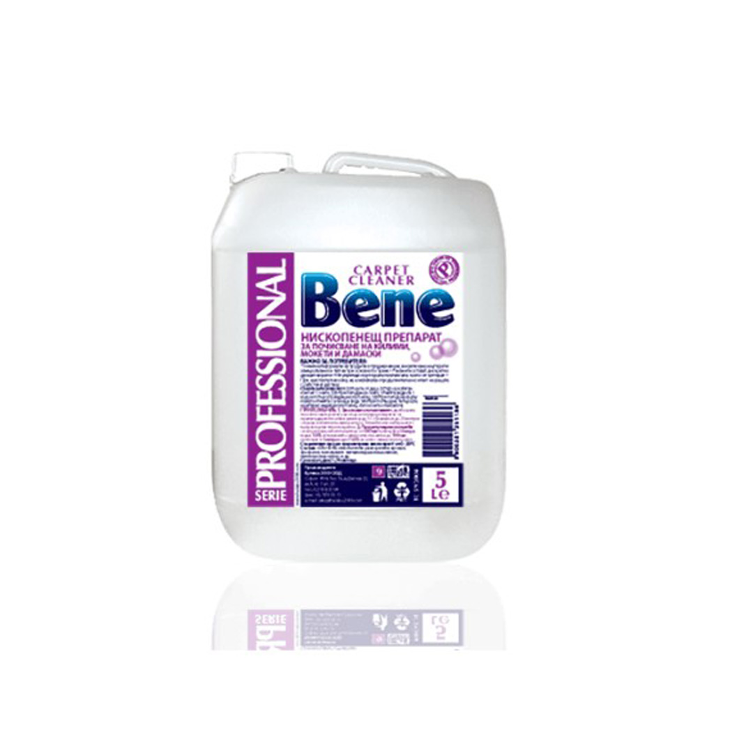 BENE препарат за почистване на килими, мокет и дамаски. Нископенещ. Премахва упорити петна. 5 литра.