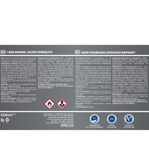 Начин на работа: Преди употреба боята се разбърква ръчно или механично. Нанася се в два слоя с четка, валяк или шприц-пистолет. Нанасянето на всеки слой се извършва след пълно изсъхване на предишния. Времето между полагането на 2 слоя е около два часа, в зависимост от температурата на околната среда. При необходимост боята може да се разрежда с вода.