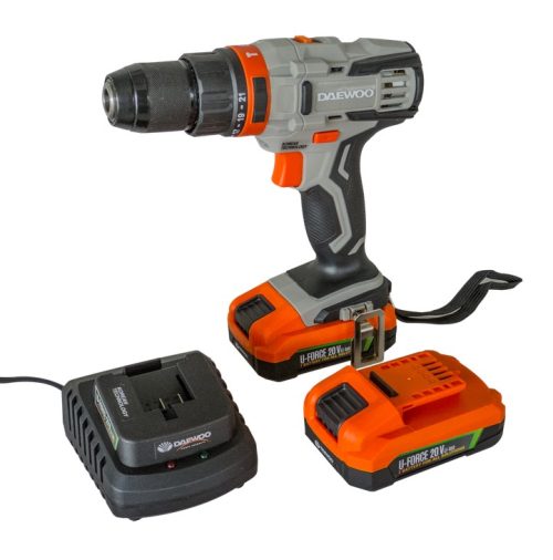 Бормашина акумулаторна ударна „U-FORCE“, две скорости 44Nm 20V Li-ion комплект +2xбатерии 2Ah+зарядна станция 2.5Ah DAEWOO 84.82 € /К-Т (165.90 лв.)