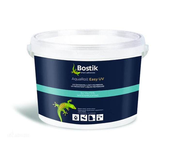 UV устойчива хидроизолация Бостик AquaRoll Easy-UV Block A515 Multi Acryl. Хидроизолация на помещения и открити площи в сгради: Може да се ползува навън и вътре – използва се за осигуряване на дълготрайна защита срещу влага, задържаща се вода, просмукваща се вода или вода, която не е под налягане, от положителната страна. Например по открити площи като балкони и тераси, мокри помещения, бани, лаборатории. Подходящ за използване върху всички видове повърхности на минерална основа, камък и каменни тухли (дялан камък), пемза тухла, брикети, газобетон, бетонни блокчета, варовик и други, измазани повърхности, на циментова основа, измазани с цимент повърхности, граут и бетонни повърхности и други. Готова е за употреба, течно приложима, водонепропусклива за употреба самостоятелно или преди керамични облицовки залепени с лепило С2, без разтворители, готова за използване.