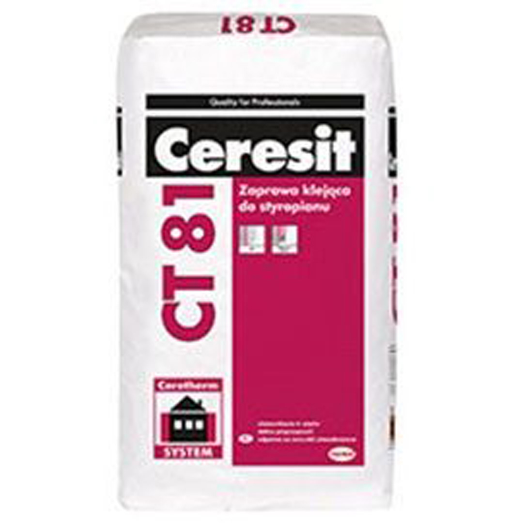 CERESIT CT 81 е лепило за плочи от експандиран пенополистирен (EPS). Част е от топлоизолационната система Ceresit Popular, предназначен за лепене на EPS плоскости за топлоизолиране на сгради. За да прилепнат напълно ЕPS плоскостите е необходимо допълнително фиксиране с помощта на механични анкери. CT 81 се използва, както при новопостроени обекти, така и върху стари фасади, подлежащи на ремонт. В опаковка от хартиена торба 25 кг.