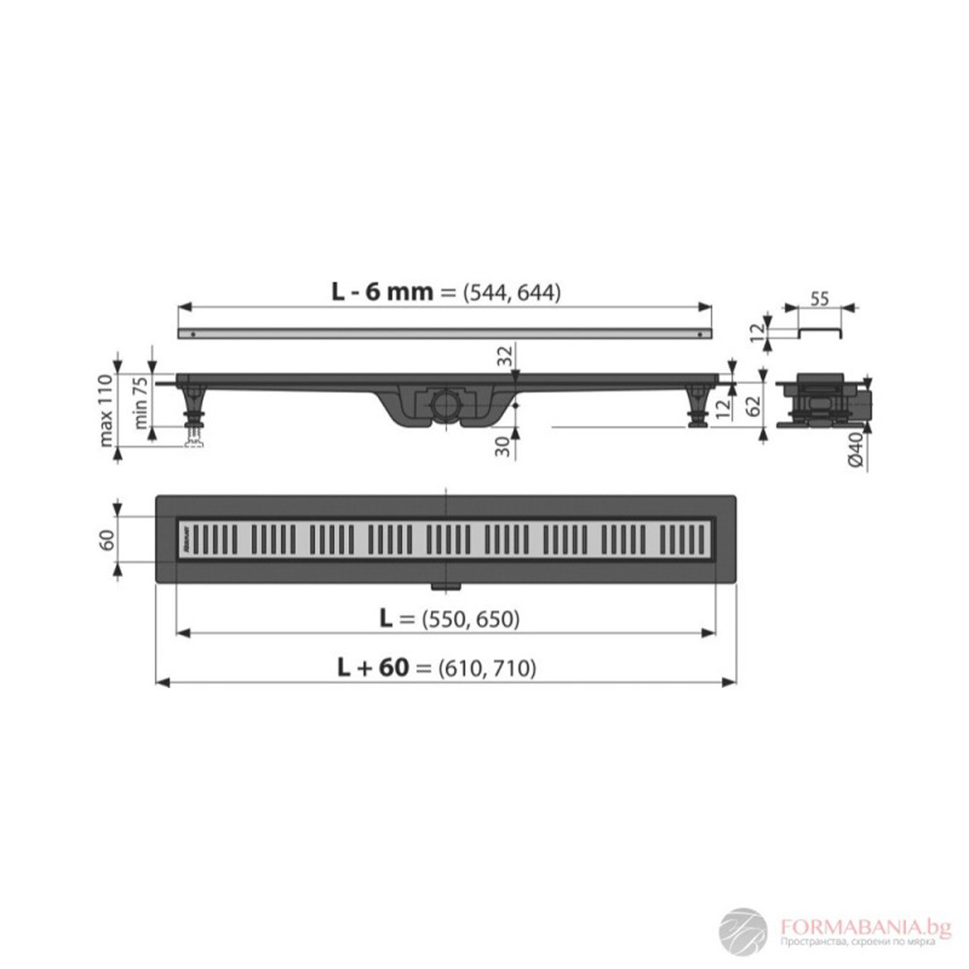 Обща височина на монтаж: 75 – 110 мм