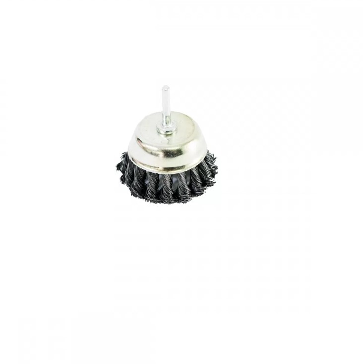 Четка 75mm, чашковидна с опашка, вълнообразна стоманена тел – произведено в Тайван.