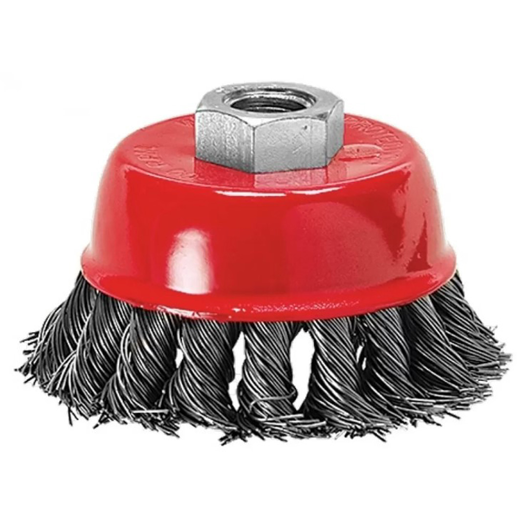 Четка за ъглошлайф, 125mm, М14, чашковидна, усукана на плитки стоманена тел – произведено в Тайван.