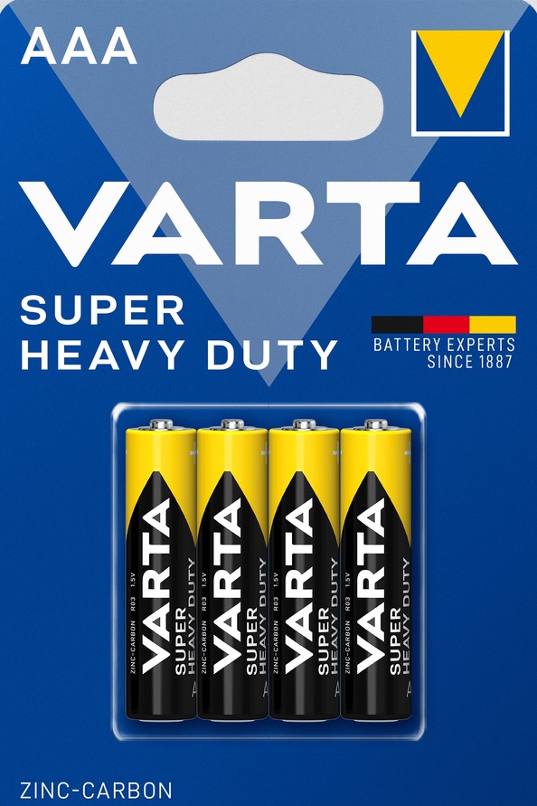 4 бр. Varta Superlife R03 AAA цинк-карбонови батерии – икономичния избор за надеждно захранване! Тези оригинални батерии на VARTA съчетават отлично качество с достъпна цена. Подходящи за нископотребляващи устройства като часовници, дистанционни управления и други. Насладете се на дълготрайна ефективност и надеждност с Varta Superlife R03 AAA батерии, предлагащи 1.5V напрежение и дълъг срок на годност. Изберете качество и спестете пари с тези надеждни батерии от VARTA.