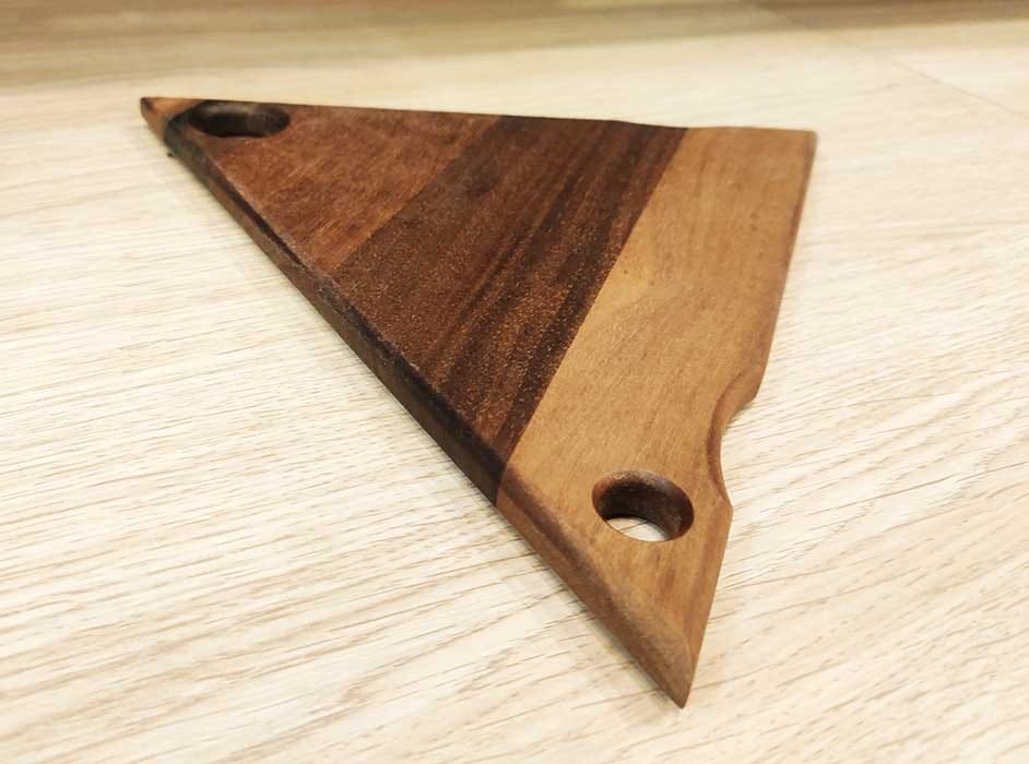 Дъската е ръчно изработена от селектирана дървесина, обработена е с бяло минерално и ленено масло, което предпазва материала от деформиране, като същевременно позволява върху дъската безопасно да се режат и сервират хранителни продукти.