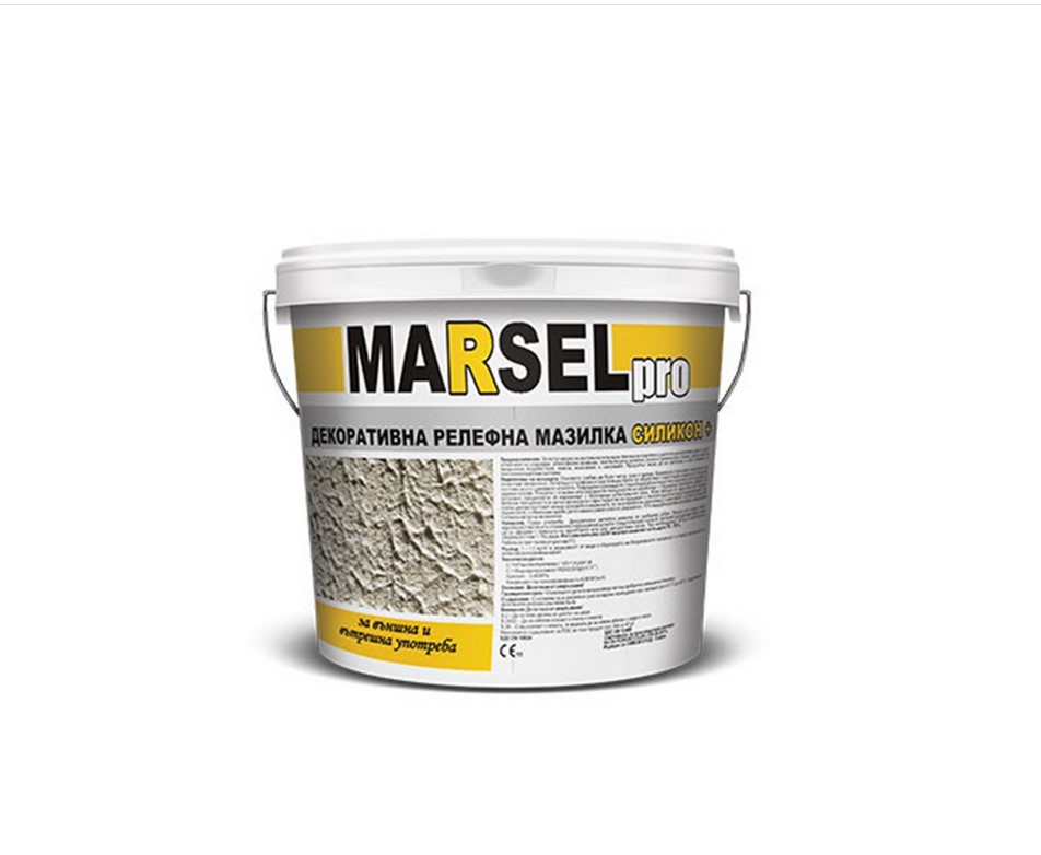 Релефна мазилка Силикон+ Marsel Pro на производителя Нинахим за получаване на вътрешни и външни финишни покрития с различен декоративен ефект и цвят.