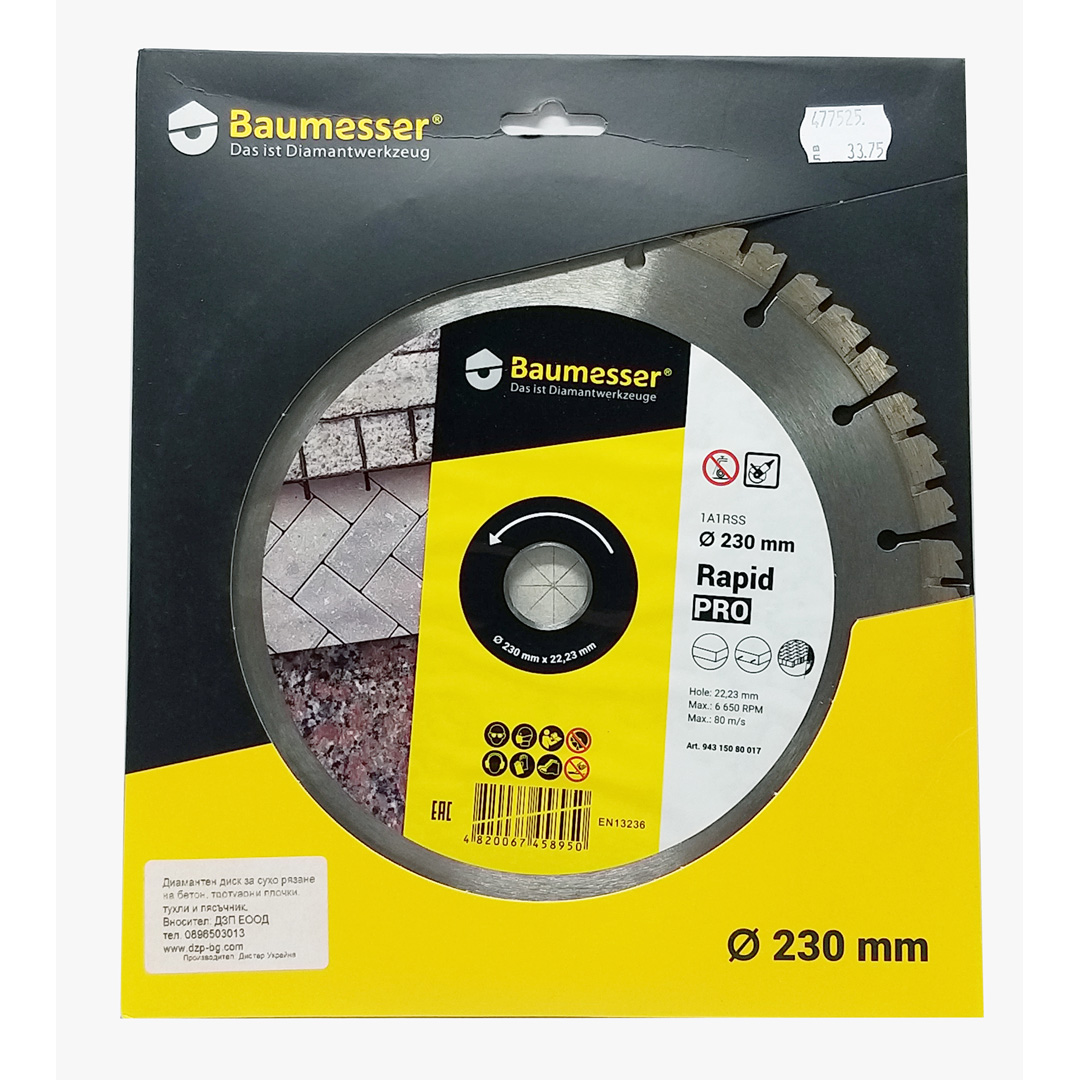 ДЗП ДИАМАНТЕН ДИСК 1A 1RSS Ф230X2.4/1.5X10X22.23-16 RAPID PRO 94315080017