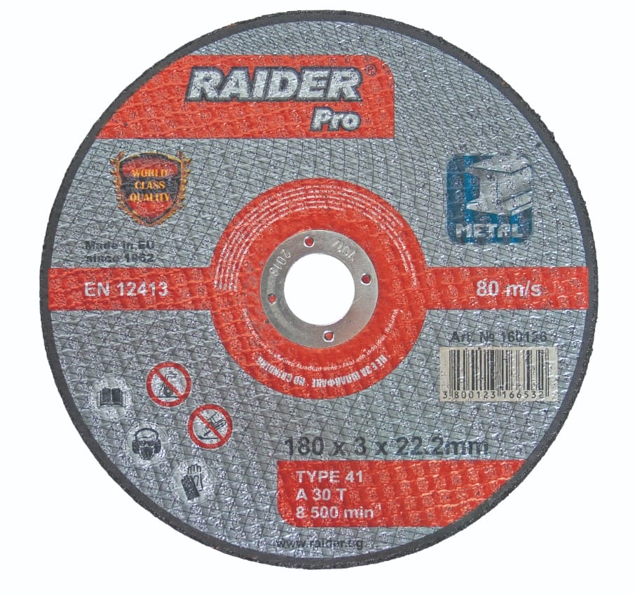 Диск за метал за ъглошлайф, 180x3x22.2мм RAIDER RDP 160126