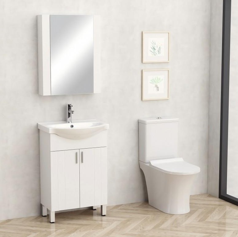 Долен шкаф за баня INIGA 5785+ УМИВАЛНИК 5615, Inter Ceramic, PVC, бял, 56.5x42x85см