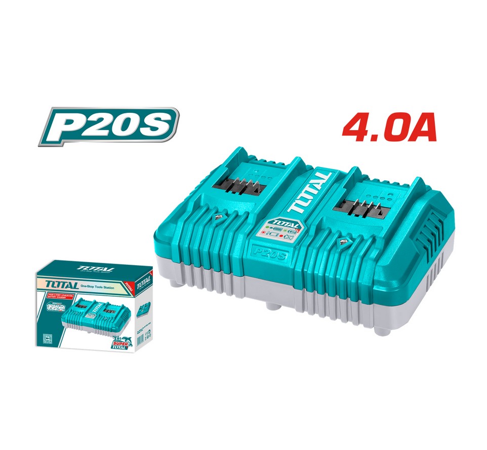 Двойно зарядно за Li-Ion батерии TOTAL Industria TCLI2034E l, 20 V, 4 А