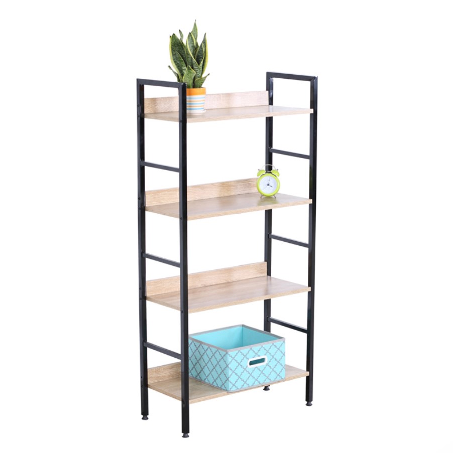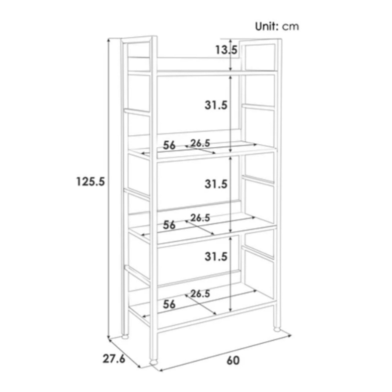 Етажерка с 4 рафта дъб сонома и черно 125 х 60 х 28 см ПДЧ и метал FORTE