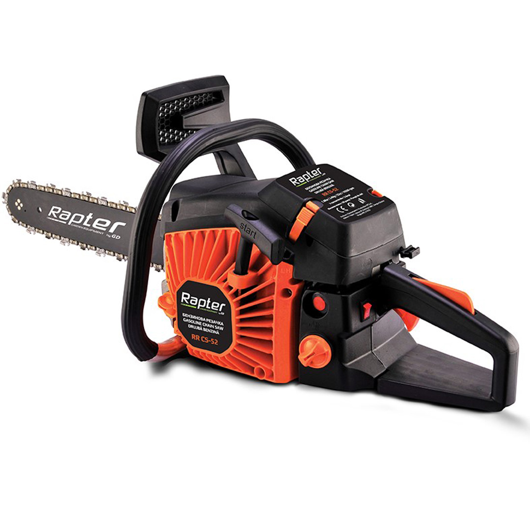 Верижен моторен трион RR44182 RAPTOR с максимална мощност 1800W и двутактов едноцилиндров двигател с въздушно охлаждане. Карбуратора на триона е диафрагма Hayand,а маховика е с вграден магнит CDI HX100. Верижният трион на RAPTOR се стартира ръчно, чрез стартерно въже. Оборотите на празен ход са 3000 ± 200 об/мин, а вместимостта на двигателя 52 куб.см.