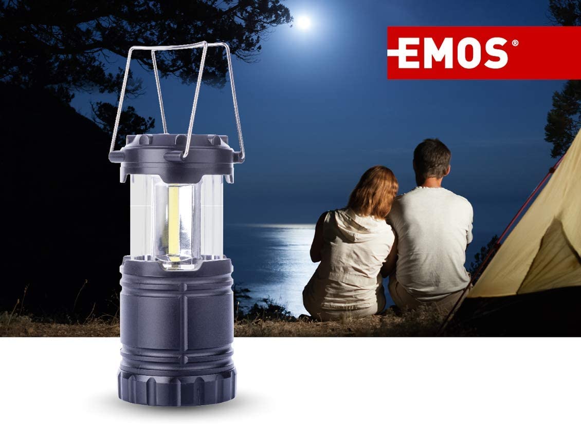 EMOS LED къмпинг фенер, преносима къмпинг лампа с кука и магнит, 300 лумена, 38 часа светене, P4006, черен
