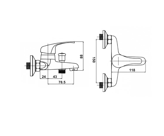 – смесителят е в комплект с еднофункционална душ слушалка, държач за душ и шлаух 150 см