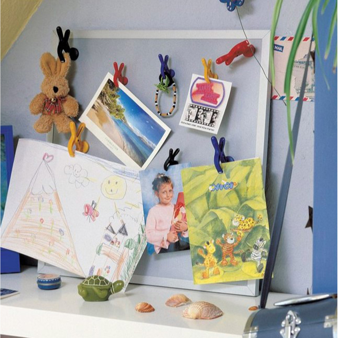 Пружинна стяга тип чирак с магнит за задържане върху метални повърхности. Предназначена е за домакинството за закрепване на списъци за пазаруване, покани, пощенски картички, снимки и други предмети с необичайна форма. Може да се използва и за по-тежки предмети. Работен обхват 15 мм.