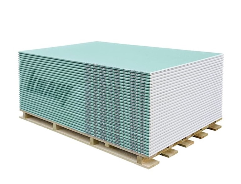 Гипсокартонена плоскост влагоустойчива KNAUF (тип GKI, зелена серия), 12.5 мм (1200×2000 мм) – 2.40 m² / ~22 кг (~9.2 kg/m²)