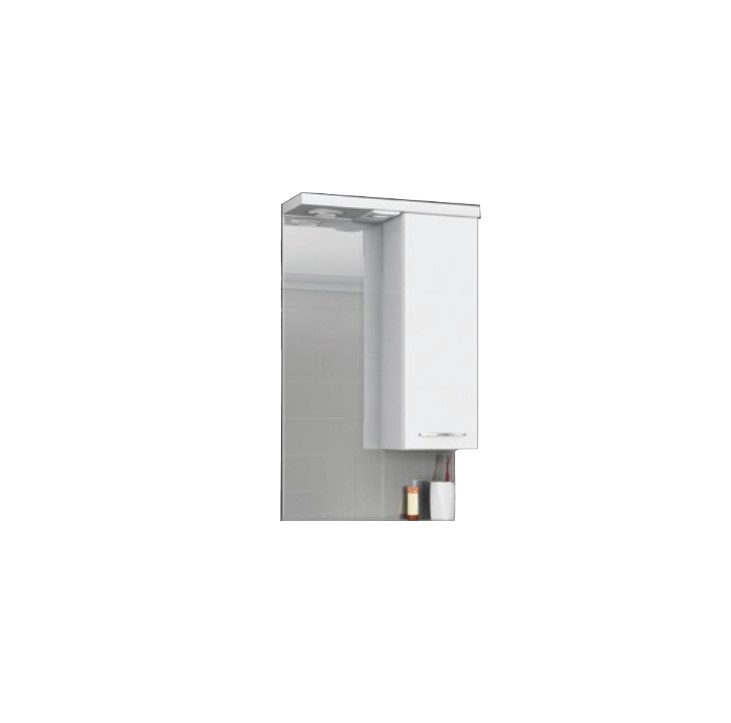 Горен шкаф – луна с LED осветление и огледало Материал PVC – водоустойчив, С гланцово покрите Цвят – бял Врати с механизми за плавно затваряне