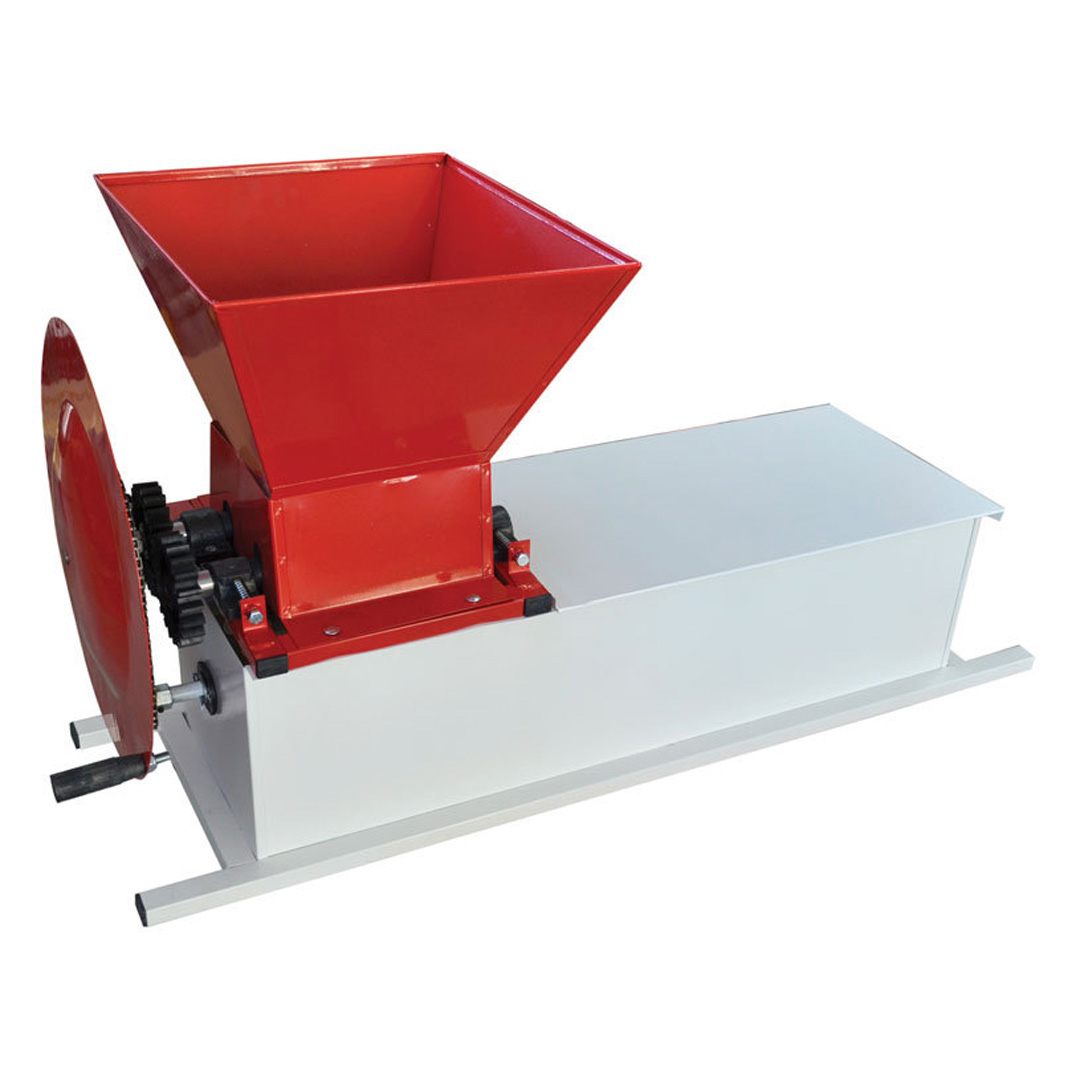 1805BULRO е гроздомелачка роначка с два конусни вала, с капацитет за висока устойчивост на натоварване и експлоатация. Разполага с едноредова задвижваща верига. Размери: 38 х 38 х 32 см.