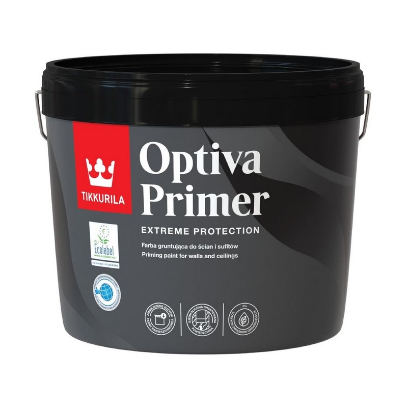 Намалява абсорбцията на повърхността. Изравнява грундираната повърхност. Увеличава покриваемостта на финишни бои от серията Tikkurila Optiva. Екологична формула и сертификат за най-високо качество – Ecolabel. Препоръчан от Полското дружество по алергии *Препоръката на Полското дружество по алергии (PTA) се отнася до продукта, след като боядисаната повърхност е напълно суха и стаята е старателно проветрена. Минимално – при спазване на съответния стандарт – съдържание на летливи органични съединения – под 1.5 гр / л.