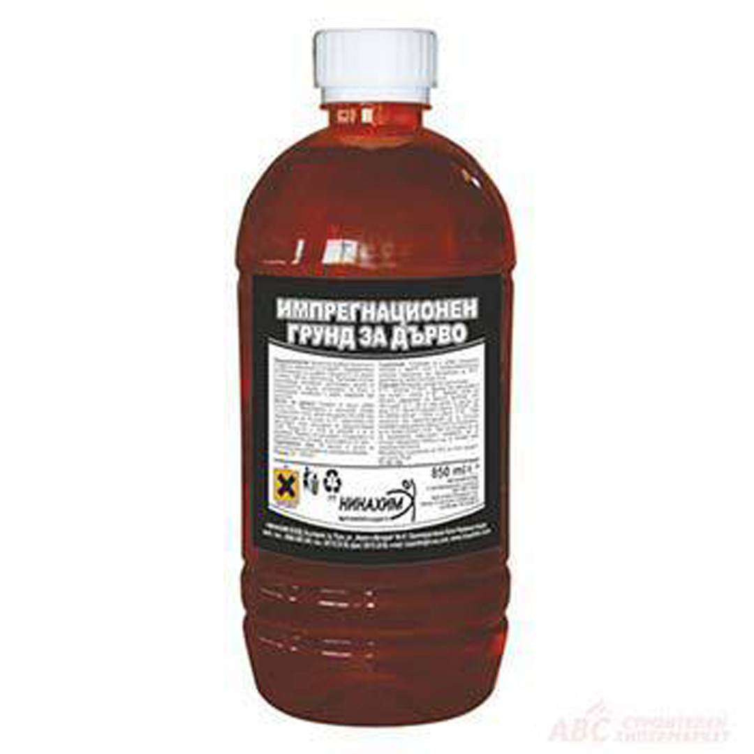 НИНАХИМ импрегнатор за дърво, грунд на водна основа. Защитава дървени повърхности в помещения и на открито. За защита от гъбички, плесен и влага. С отлична проникваща способност увеличава влагозащитата на дървото. Лесен за нанасяне, с разход 70-90 мл/м2. Пълно изсъхване се постига след 6 часа. Нанася се с четка или валяк. Опаковка 850 мл.