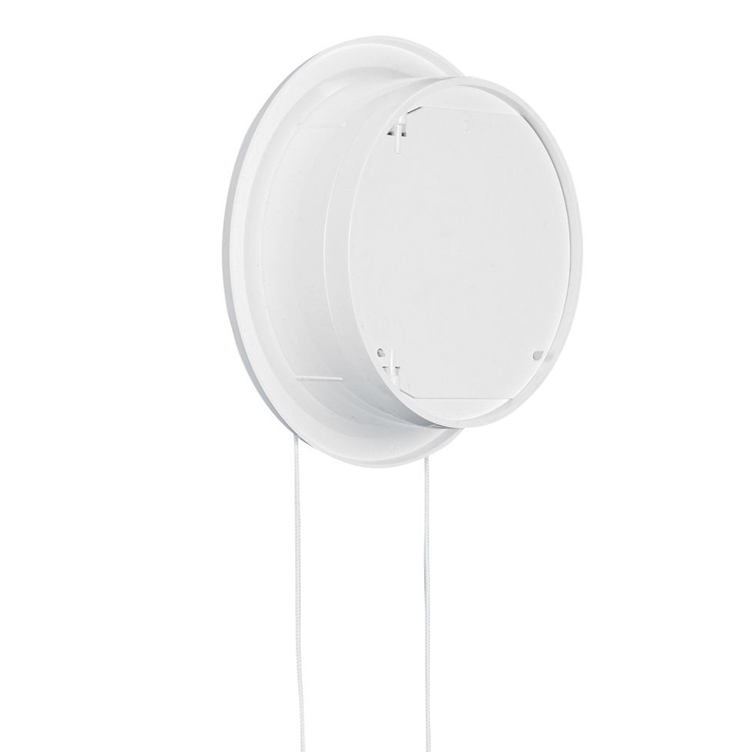 ХАКО кръгла пластмасова вентилационна решетка VM 421 ф110. Висококачествен материал ASA с UV стабилизатор. Вентилационна решетка за вътрешен и външен монтаж, отваряне и затваряне с помощта на лост или шнур. Цвят бял. Размери: а130х в105х с34 мм.