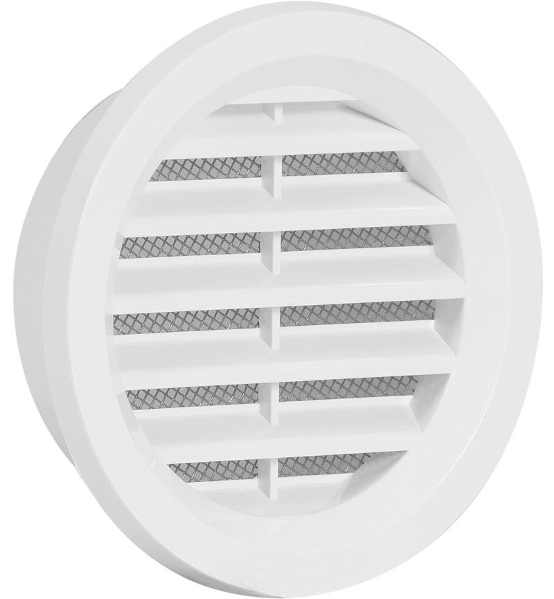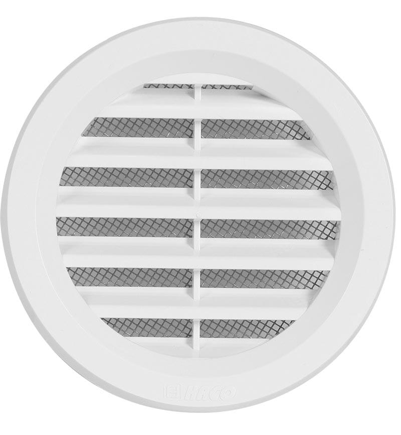 ХАКО кръгла пластмасова вентилационна решетка VM 411 ф75. Висококачествен материал ASA с UV стабилизатор. Вентилационна решетка за вътрешен и външен монтаж, с мрежа против насекоми. Цвят бял. Размери: а92х в70х с25 мм.