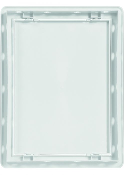 Пластмасова вратичка за ревизионни отвори VD 110 – малка. Може да се използва като отварящ се капак на различни строителни ревизионни отвори.Висококачествен материал ASA с UV стабилизатор като повърхността на изделието не пожълтява. Размери: 148х198х164х214х19 мм. Цвят: бяла.