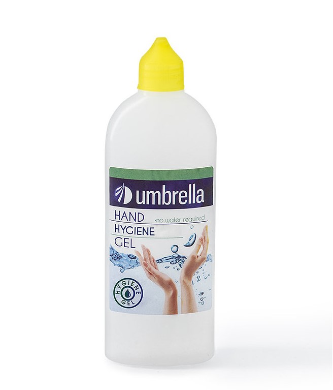 Хигиенен гел за ръце – Umbrella почиства ръцете без вода. Съдържа алкохол.