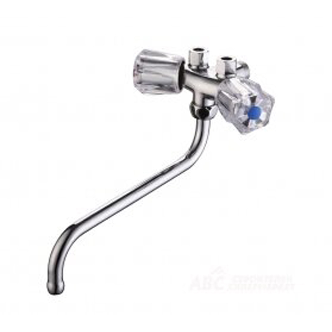 Месингов смесител с каучуков затварящ механизъм. Моделът е с две ръкохватки за проточен бойлер. Предвиден е за стенен монтаж. Серия Дунав. Производител Inter Ceramic.