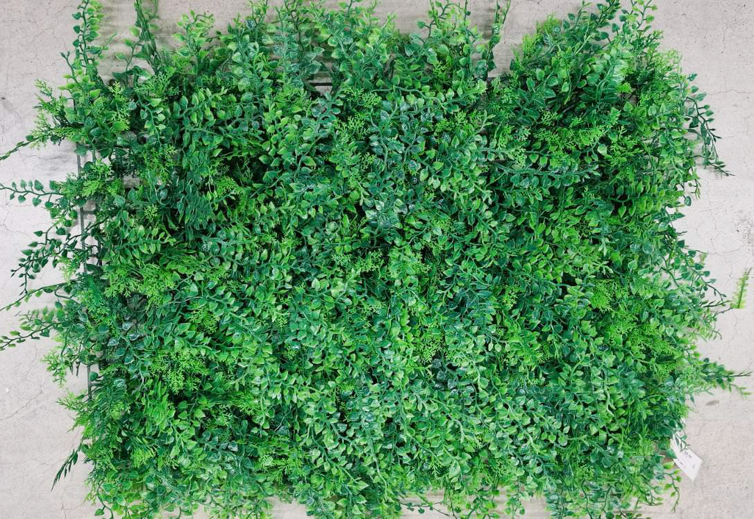 Пано – изкуствена трева подходящо, както за декорация на дома, така и за офиси, хотели, веранди. Изкуствената зеленина е закрепена на PVC решетка, което позволява и използването ѝ за закрепяне и покриване на колони. Може да бъде комбинирана и с други модели за създаването на по интересен дизайн. Цената е за един брой.