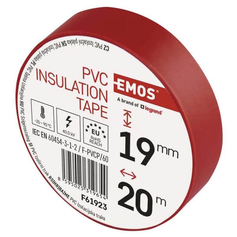 Изолационна лента PVC 19/20, EMOS 0,13мм х 19мм х 10м , Цвят: червен