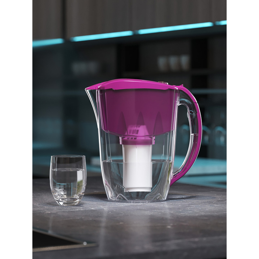 Обем 2.8 L (Полезен обем: 1,5 L). Капацитет на филтъра (по литри) 350. Цвят: цикламен. Производител: Aquaphor.