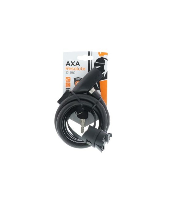 Кабелната вело-ключалка AXA Resolute е дълга 180 см, диаметърът на кабела е 8 мм.